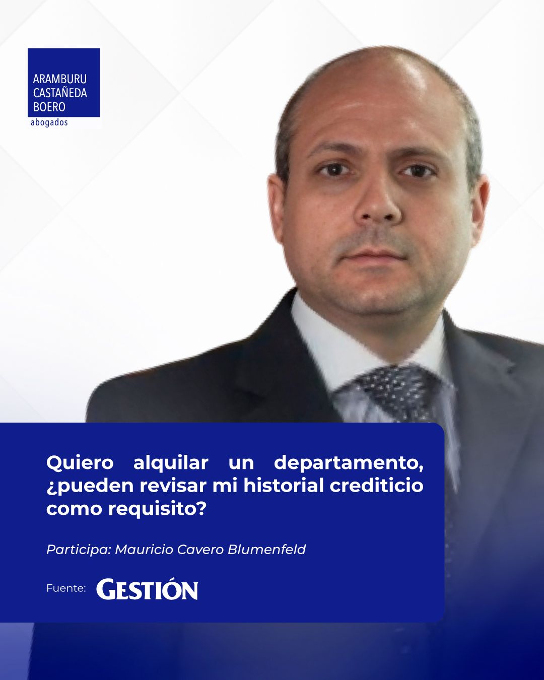 Nuestro socio, Mauricio Cavero-Blumenfeld, brindó su opinión en el Diario Gestión sobre la posibilidad de revisar el historial crediticio como requisito para alquilar un inmueble y los aspectos legales que deben considerarse en este tipo de evaluaciones.