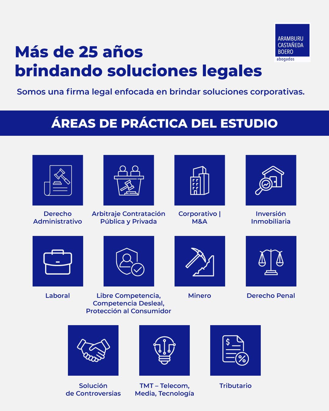 Con más de 25 años de experiencia, Aramburú, Castañeda, Boero – abogados, se ha consolidado como una firma legal moderna y especializada en brindar soluciones corporativas a empresas de distintos sectores.