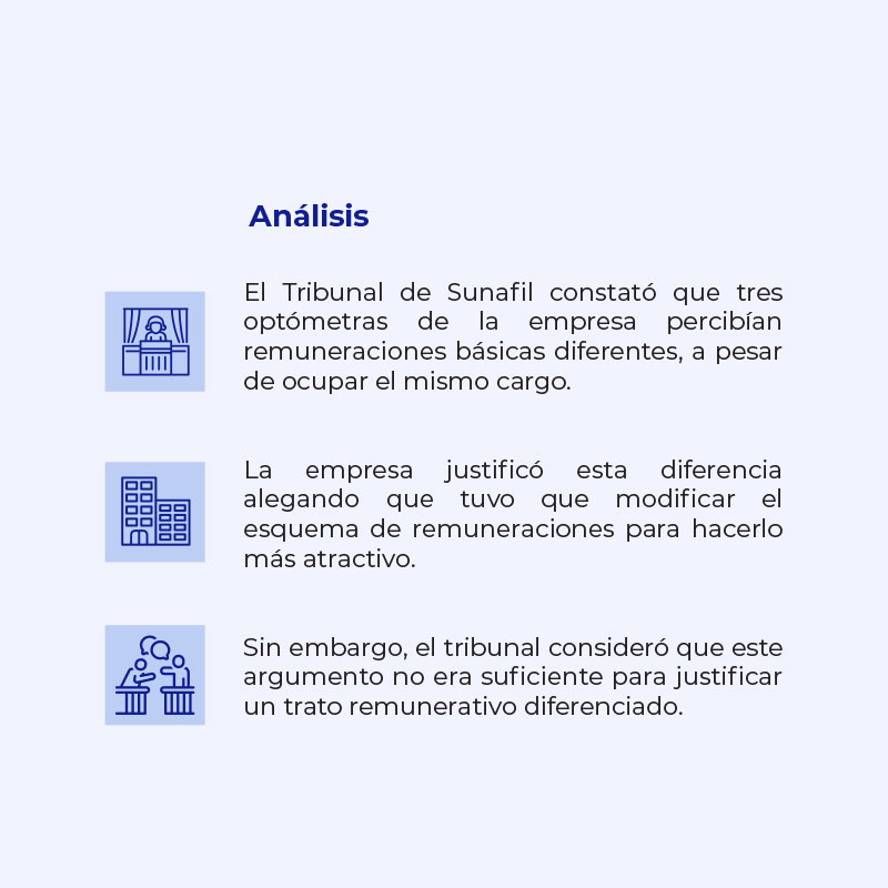Mediante la Resolución Nº 109-2025-SUNAFIL/TFL-primera sala se resolvió un recurso de revisión interpuesto por una empresa de ópticas, a raíz de una multa impuesta por incurrir en trato discriminatorio al no acreditar el tratamiento diferenciado en las remuneraciones de dos trabajadores, ¡conoce más, aquí! ⤵️